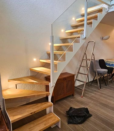 A l'écoute pour réaliser vos projets d'escalier de tout type en limon central ou en double limon et bien d'autre....je serai vus aidez a trouver et a réaliser un escalier fonctionnel et en meme temp une œuvre d